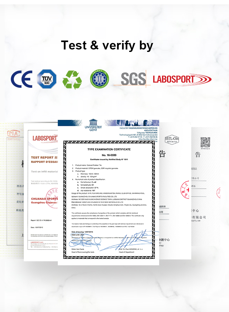 Material | Surface: EPDM granule+SBR granule; Bottom: SBR recycled rubber |